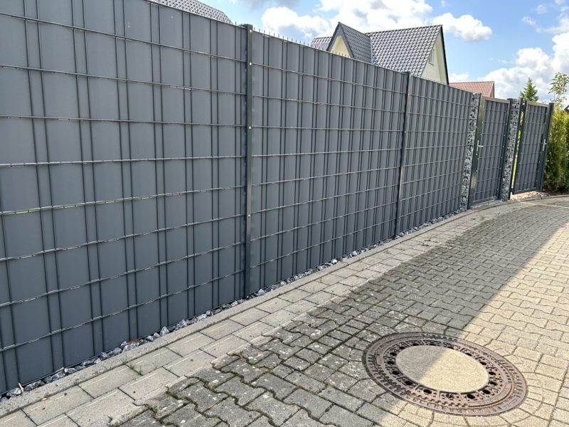 Zudem wirkt ein sauber bis unten eingeflochtener Sichtschutzstreifen hochwertig und aufgeräumt – vor allem im Vorgartenbereich oder zur Straße hin.